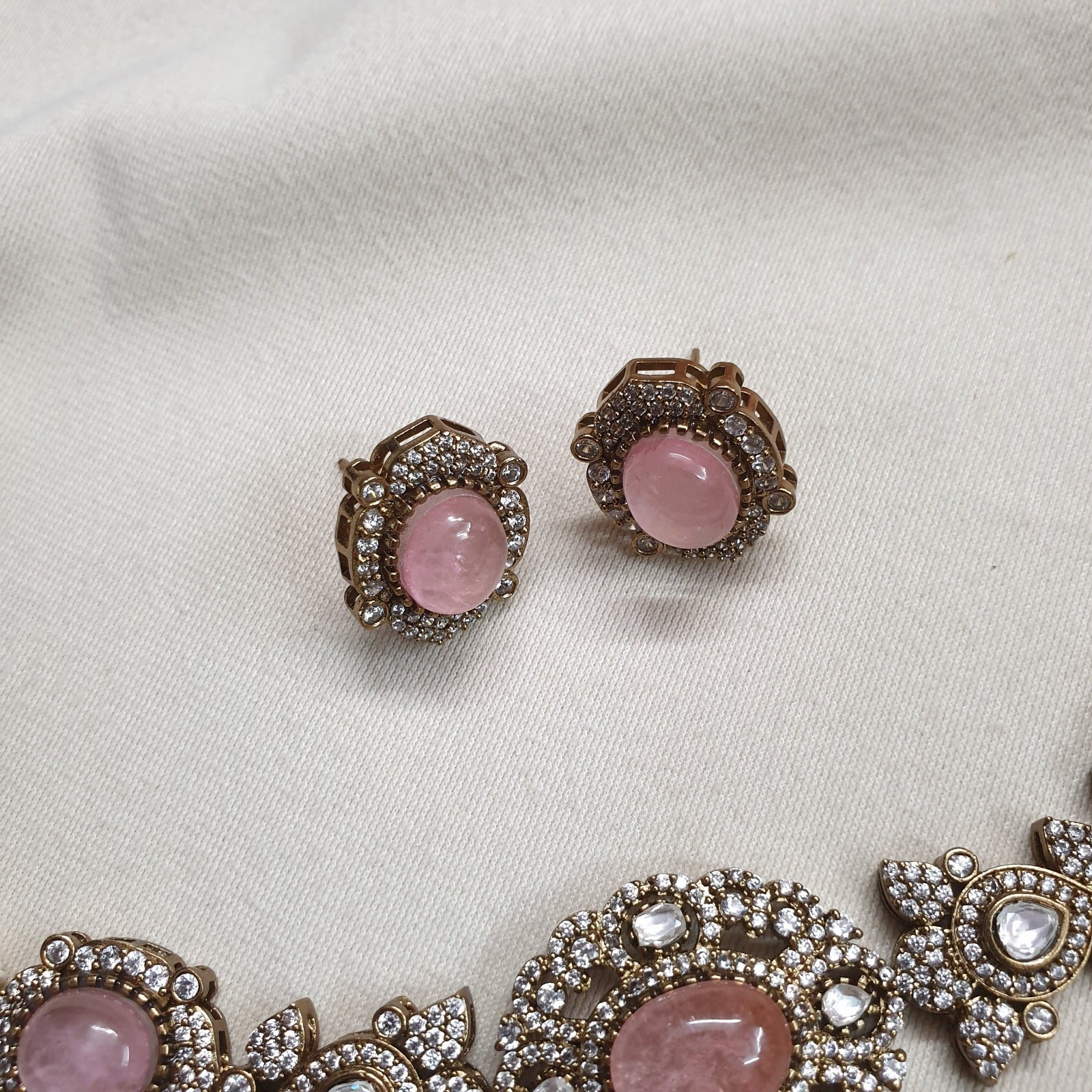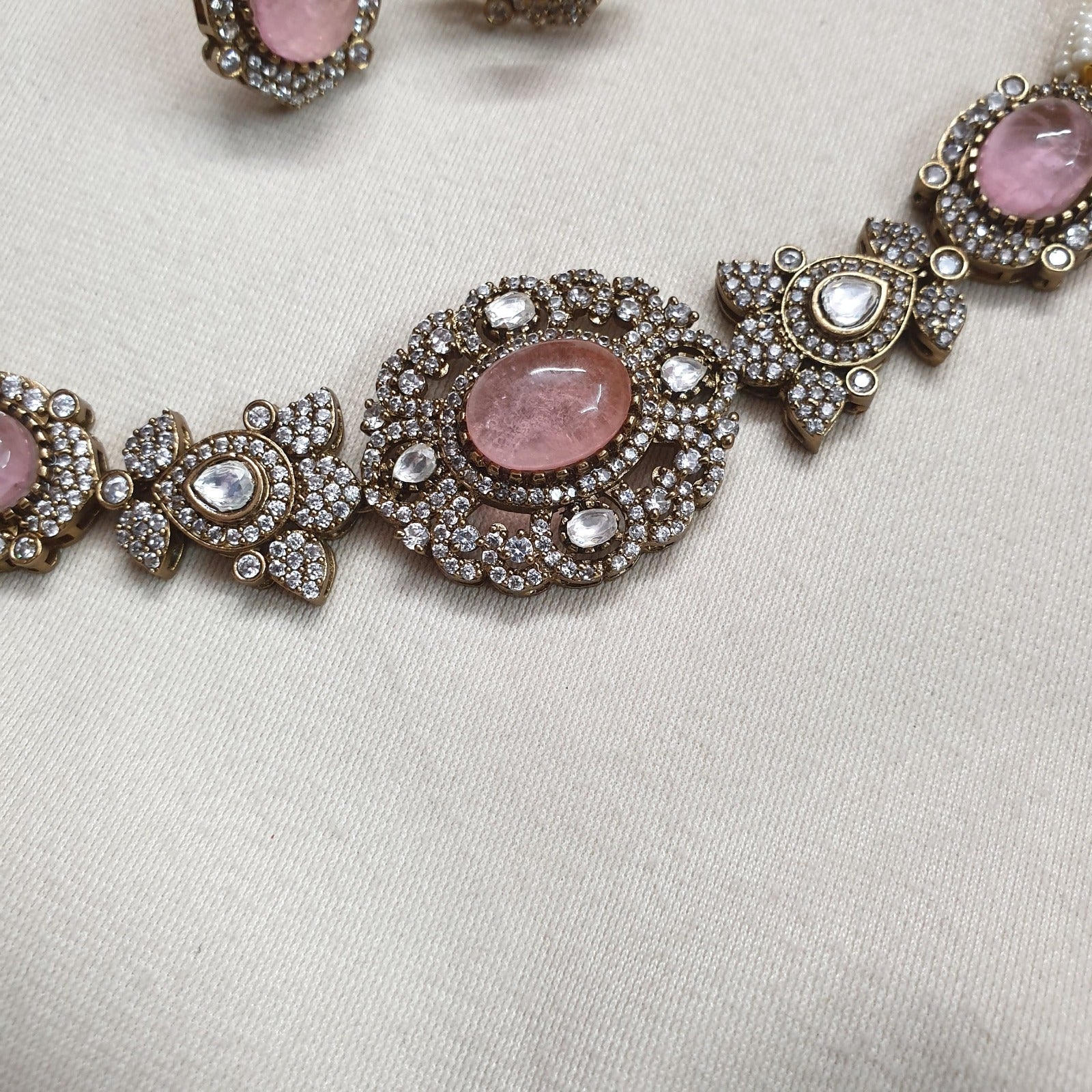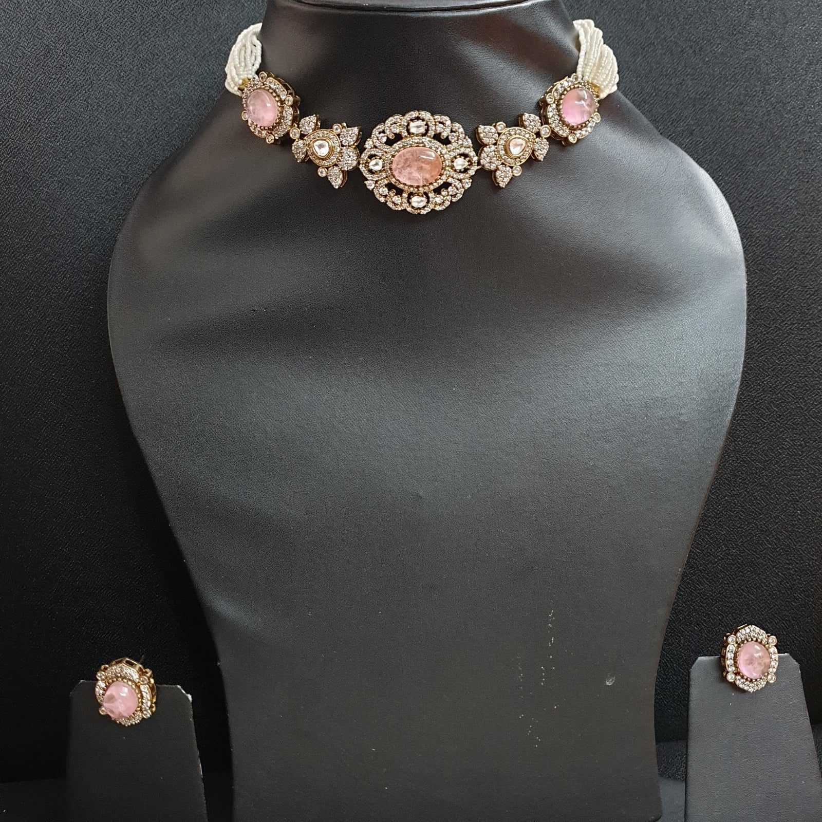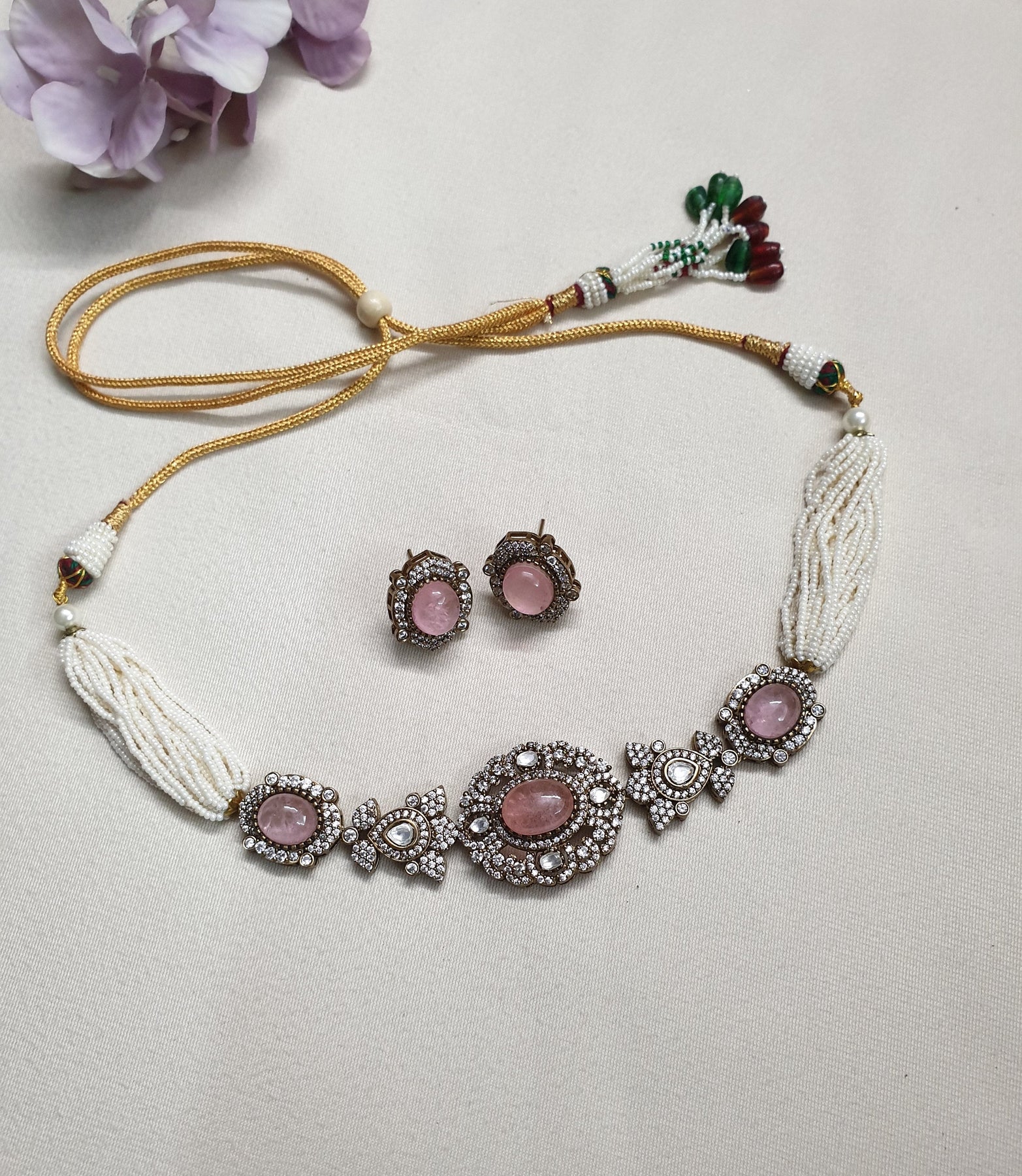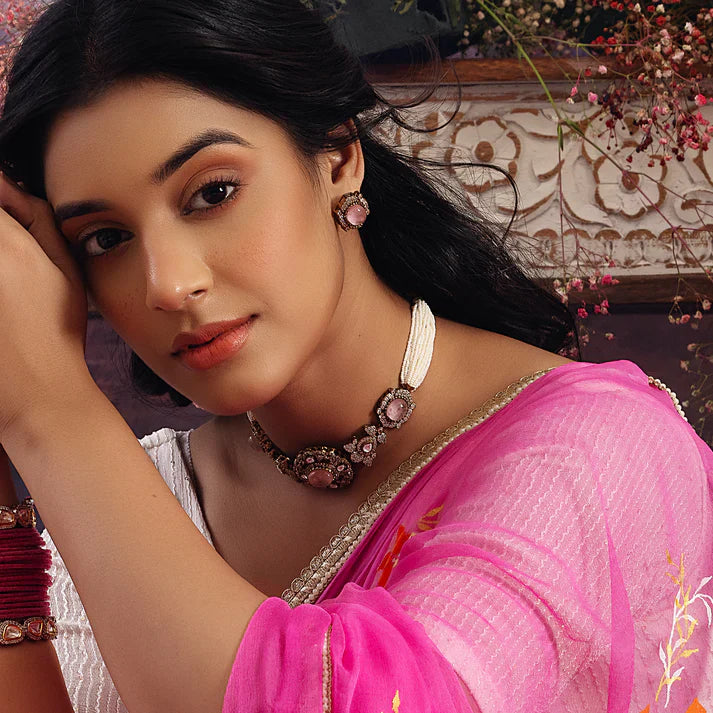 Pink Color Doublet Stone Kundan Choker Necklace With Studs