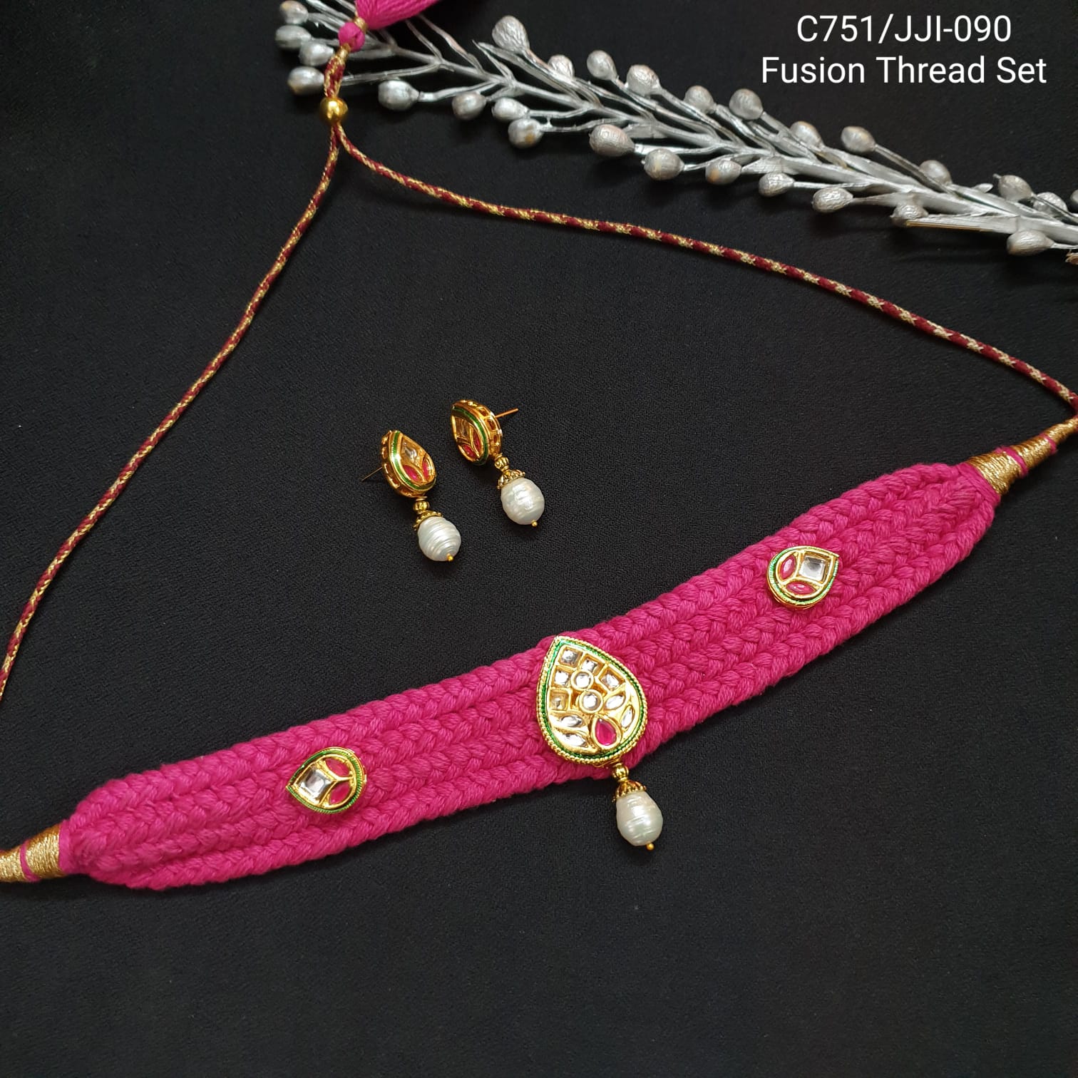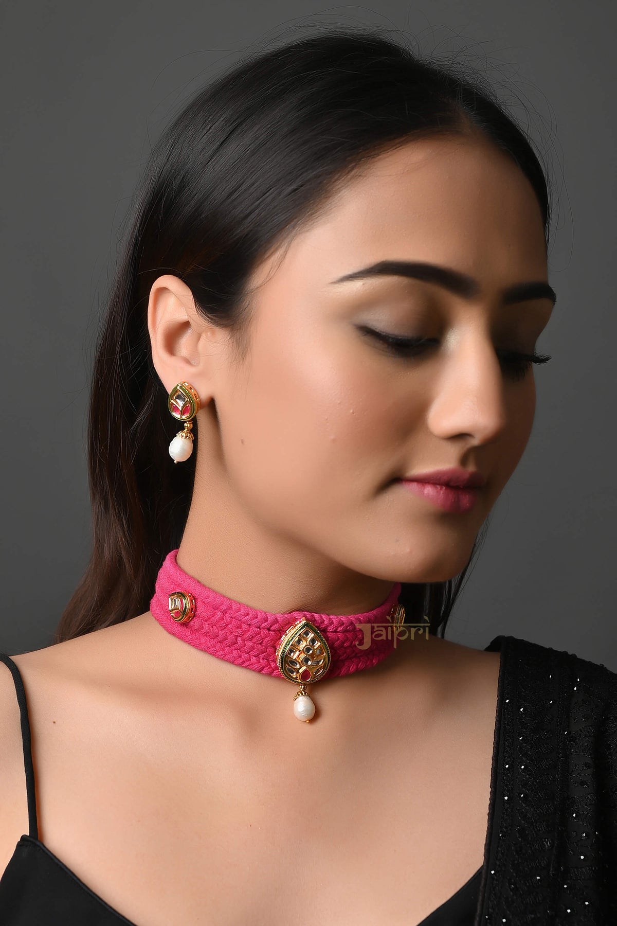 An elegant pink thread Kundan choker set with earrings with the most stunning festoon. The perfect accessory for your occasion. This necklace is handcrafted with love
