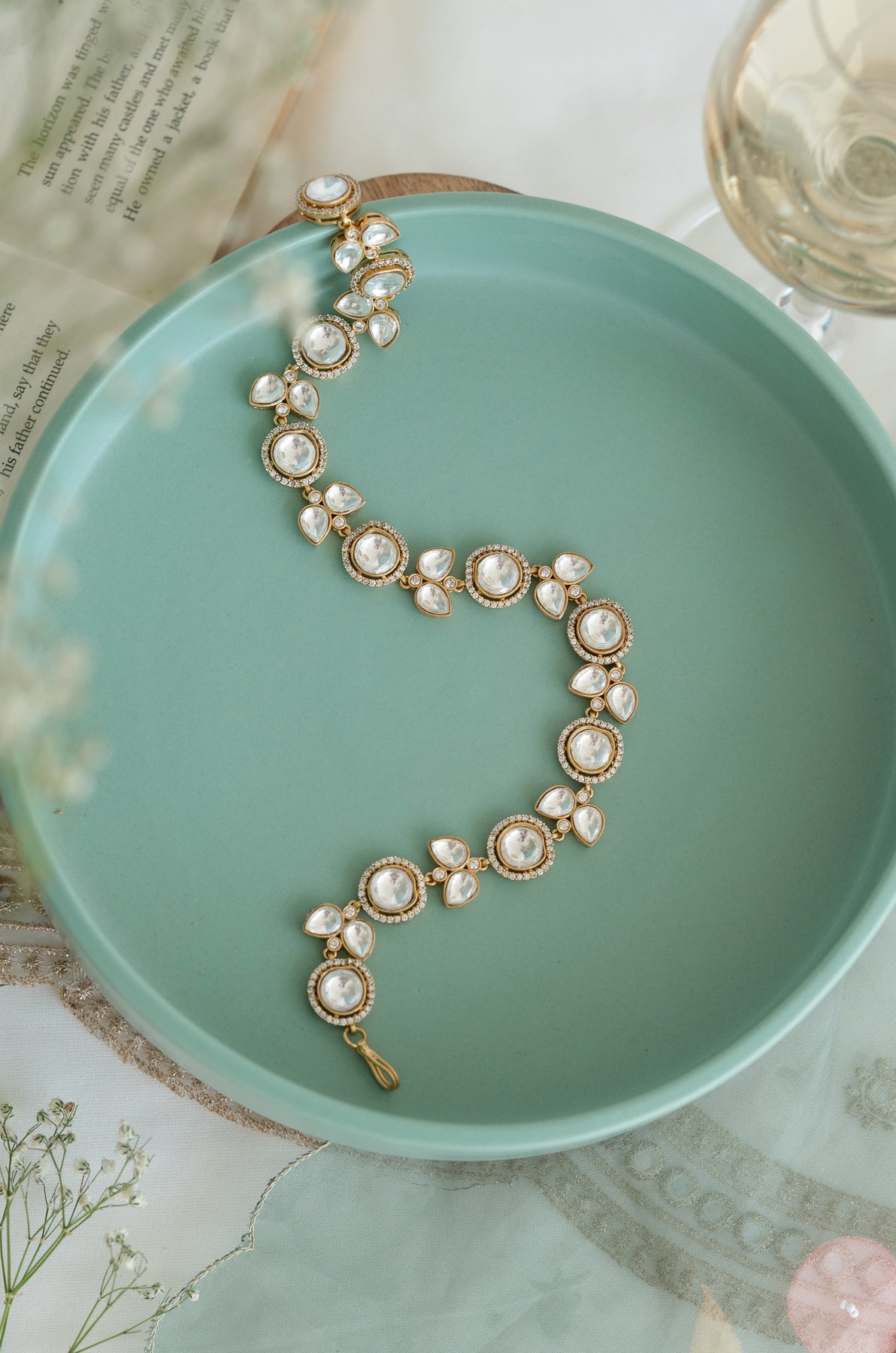 An elegant Kundan matha patti the most stunning festoon. The perfect accessory for your occasion. This mathapatti is handcrafted with love