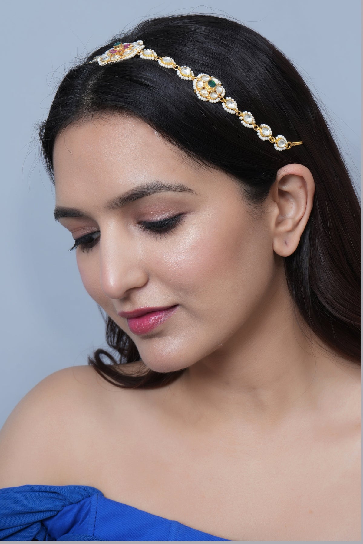 An elegant Kundan matha patti the most stunning festoon. The perfect accessory for your occasion. This mathapatti is handcrafted with love