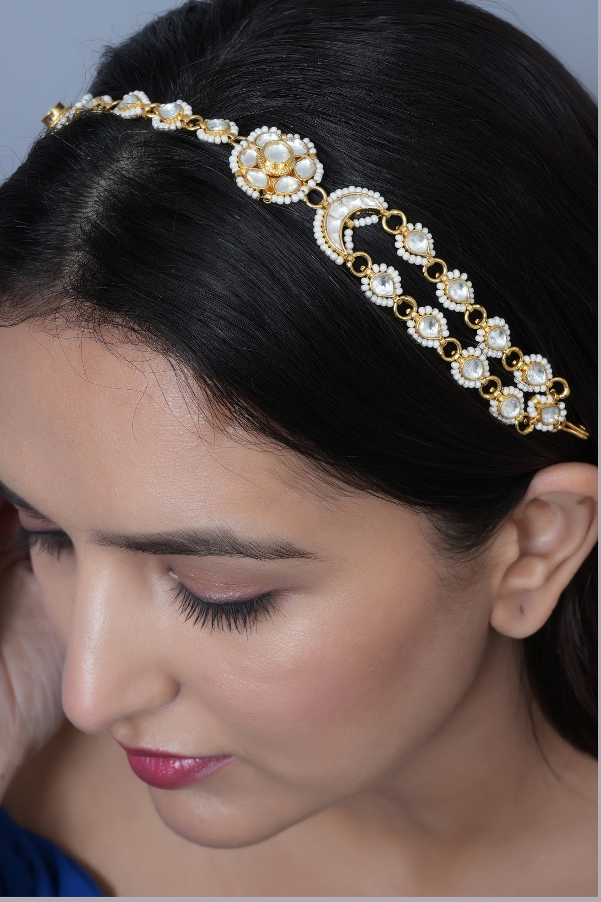 An elegant Kundan stone matha patti the most stunning festoon. The perfect accessory for your occasion. This matha patti is handcrafted with love