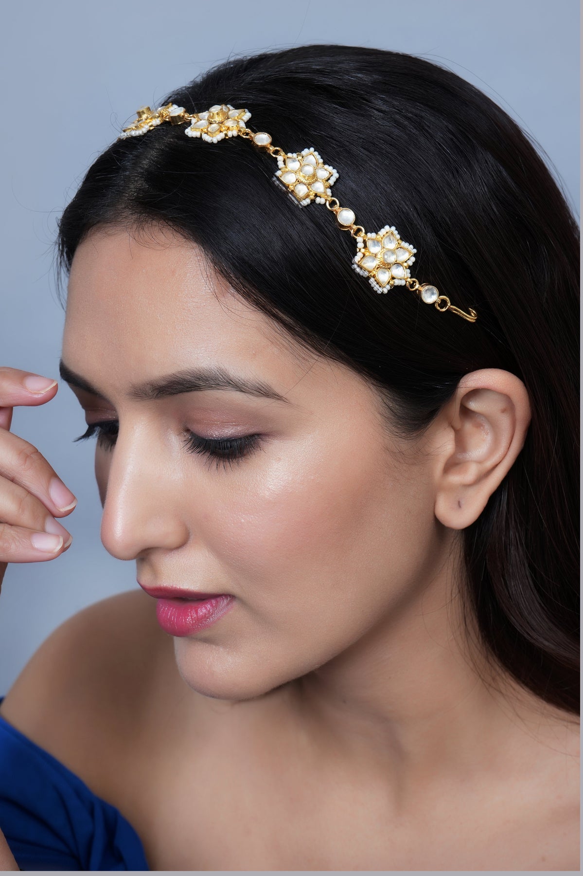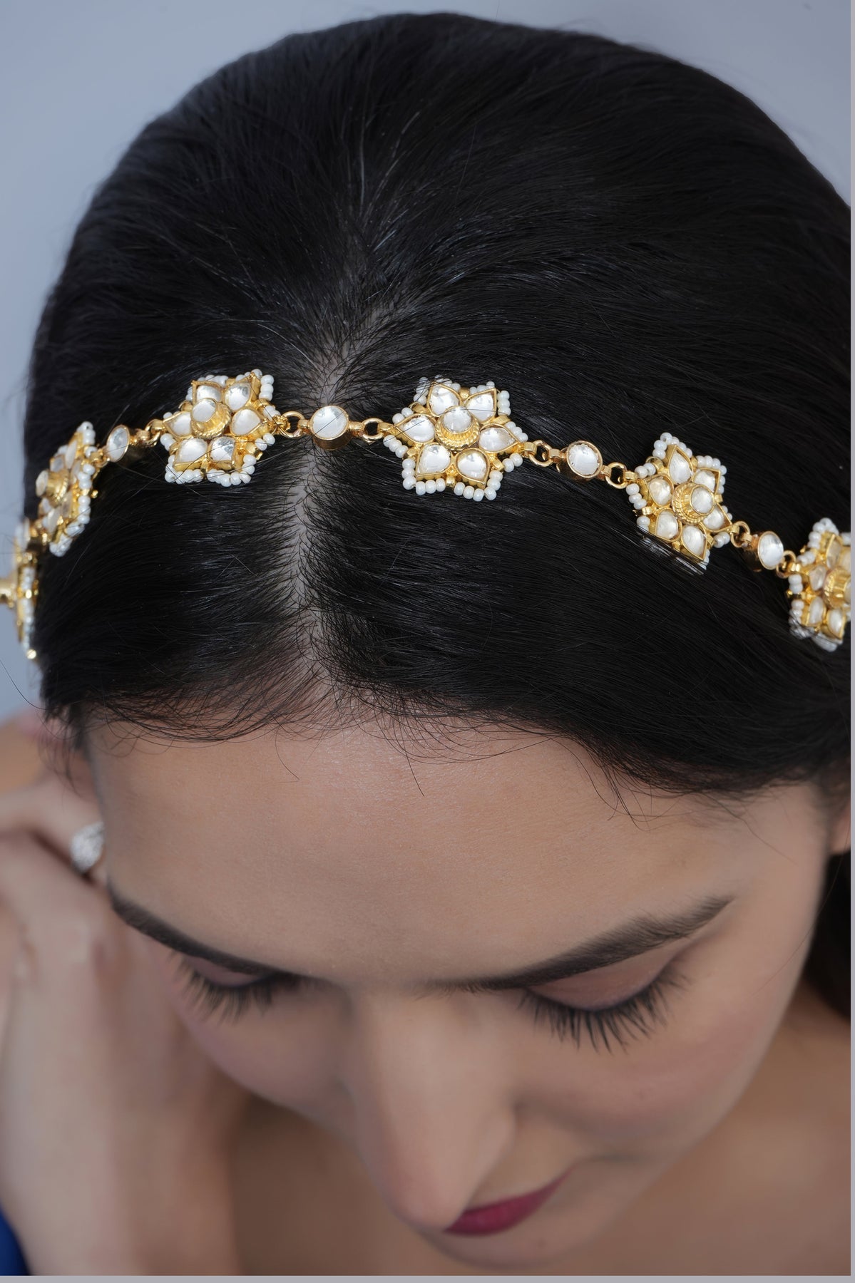 An elegant Kundan stone matha patti the most stunning festoon. The perfect accessory for your occasion. This matha patti is handcrafted with love