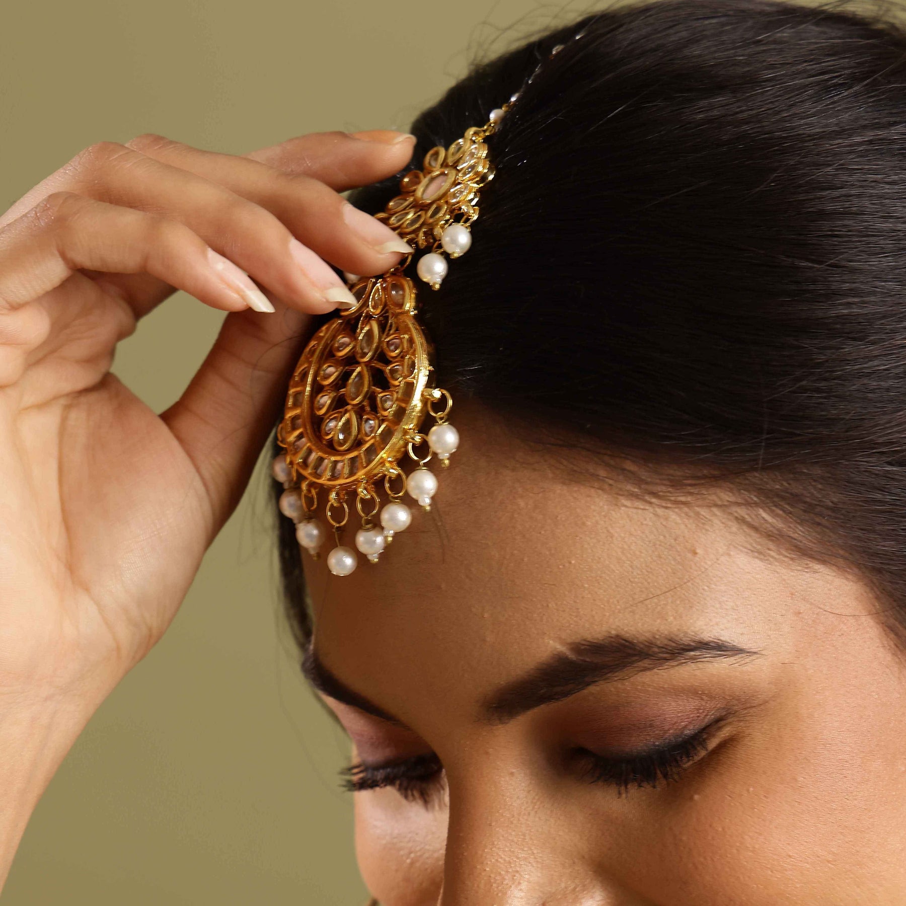An elegant Kundan & pearl maang tikka the most stunning festoon. The perfect accessory for your occasion. This maang tikka is handcrafted with love