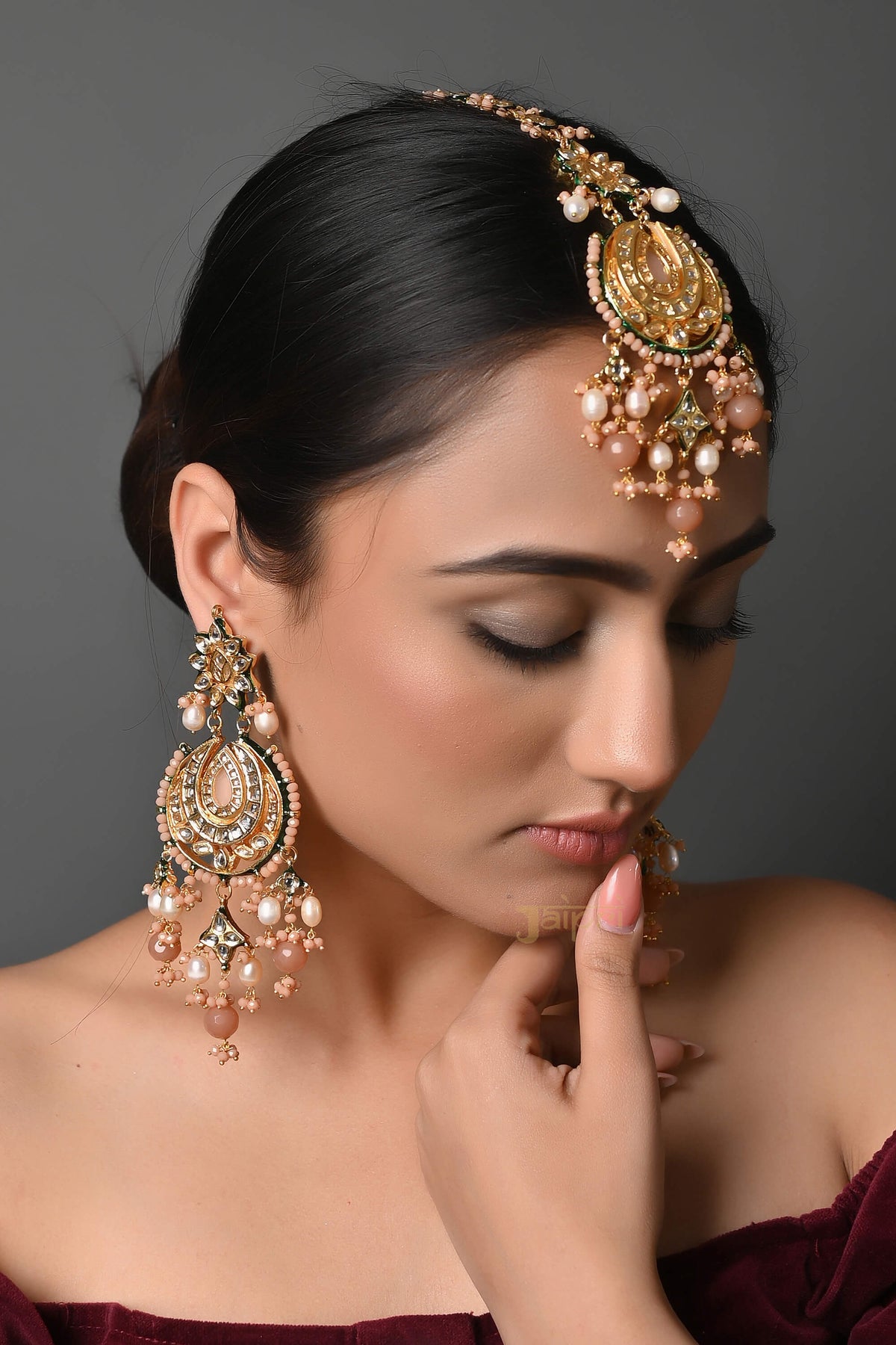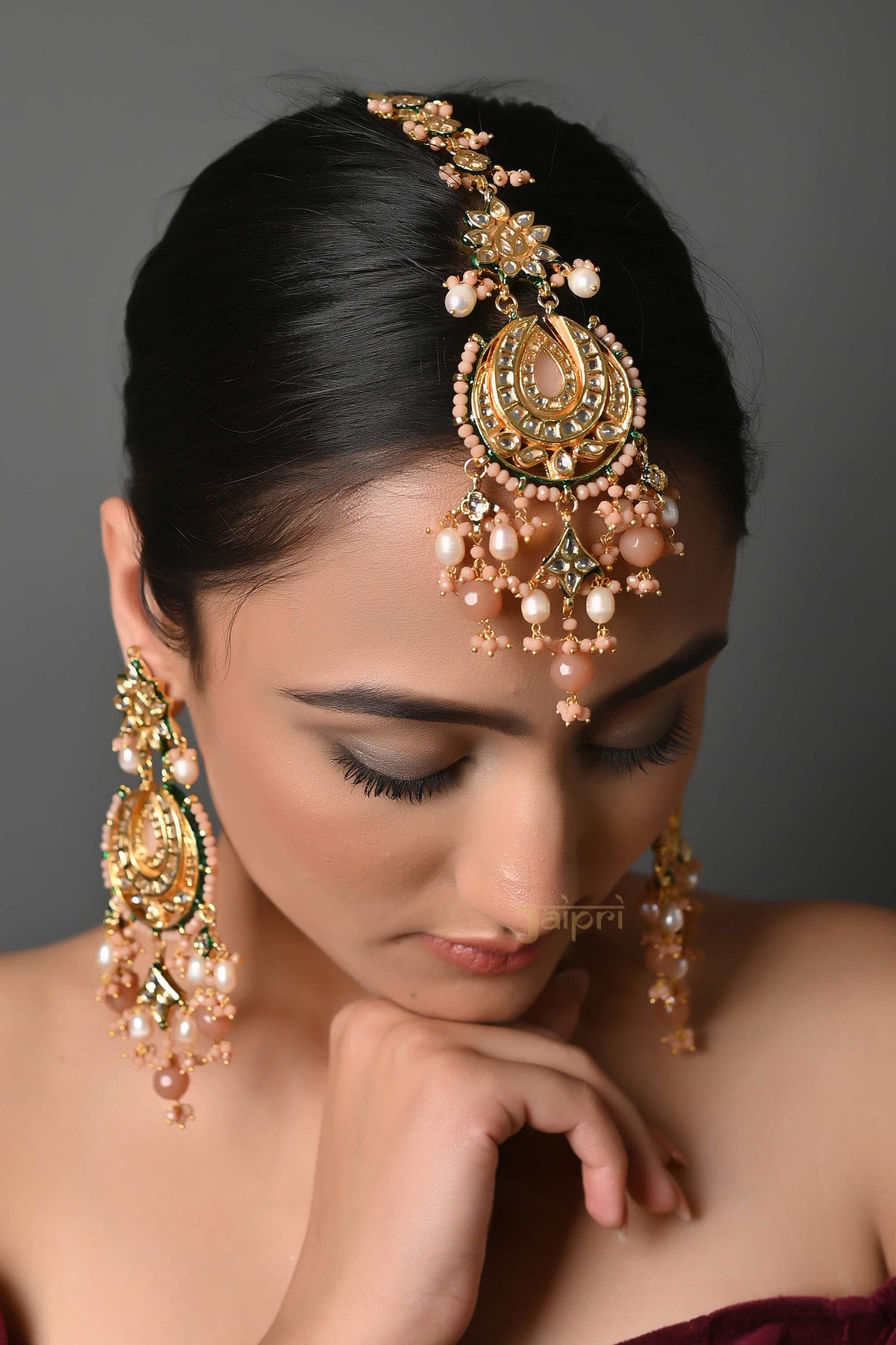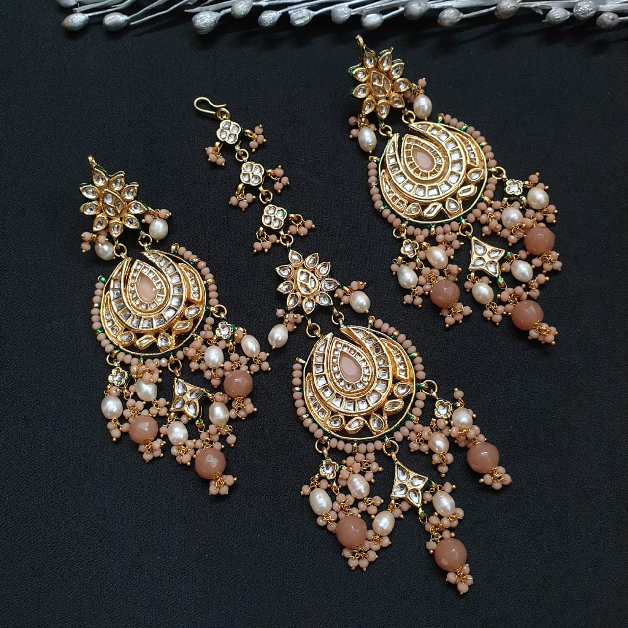 An elegant Kundan maang tikka and earrings set with the most stunning festoon. The perfect accessory for your occasion. This necklace is handcrafted with love