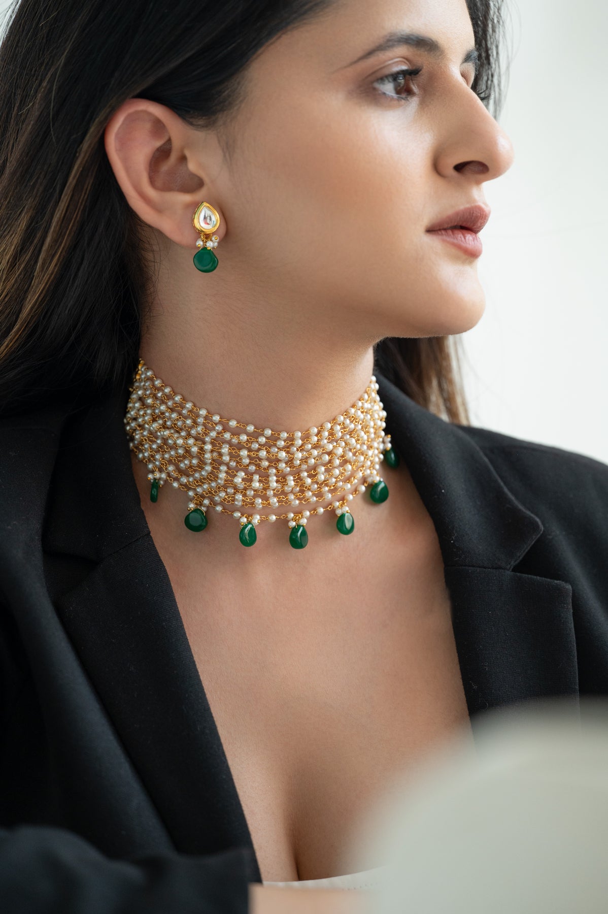 An elegant stone choker necklace & earrings with the most stunning festoon. The perfect accessory for your occasion. This necklace set is handcrafted with love