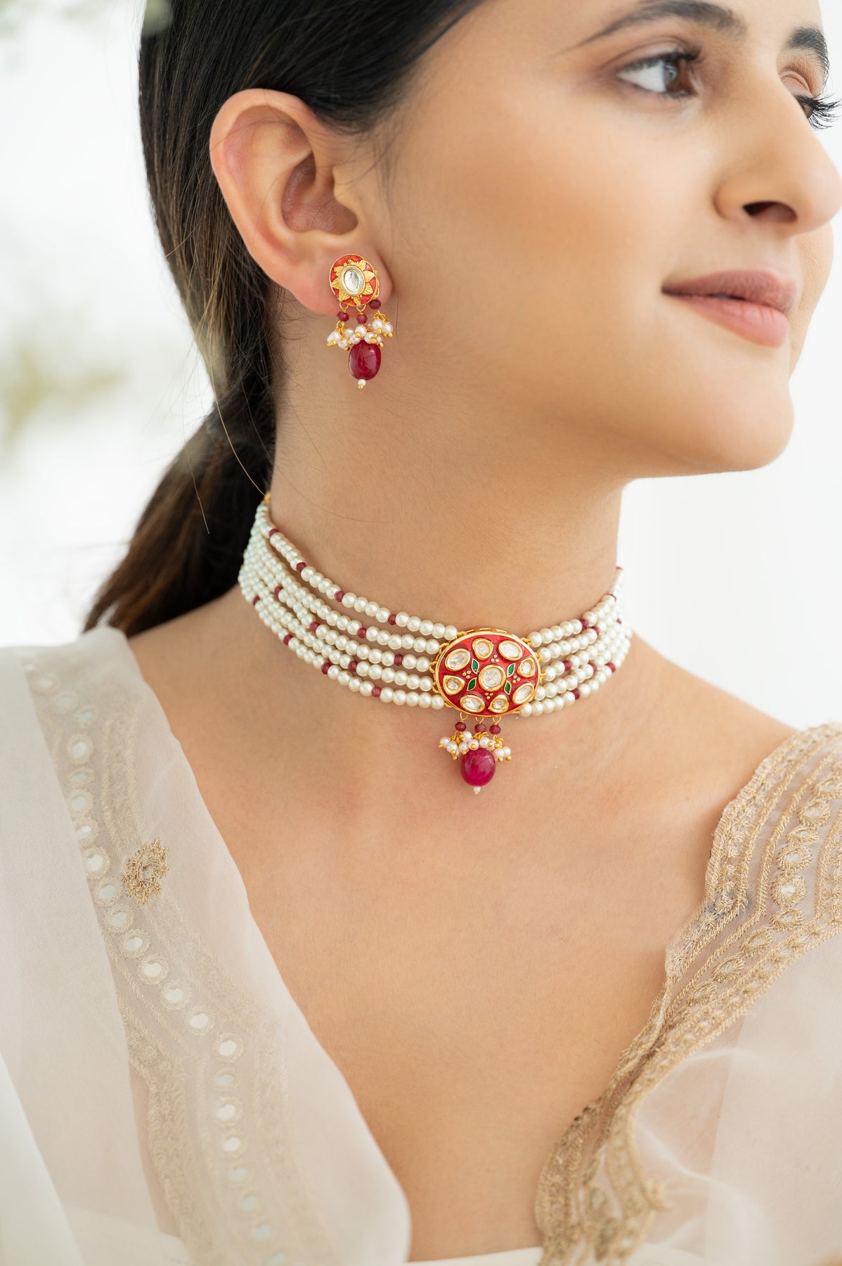An elegant stone choker necklace & earrings with the most stunning festoon. The perfect accessory for your occasion. This necklace set is handcrafted with love