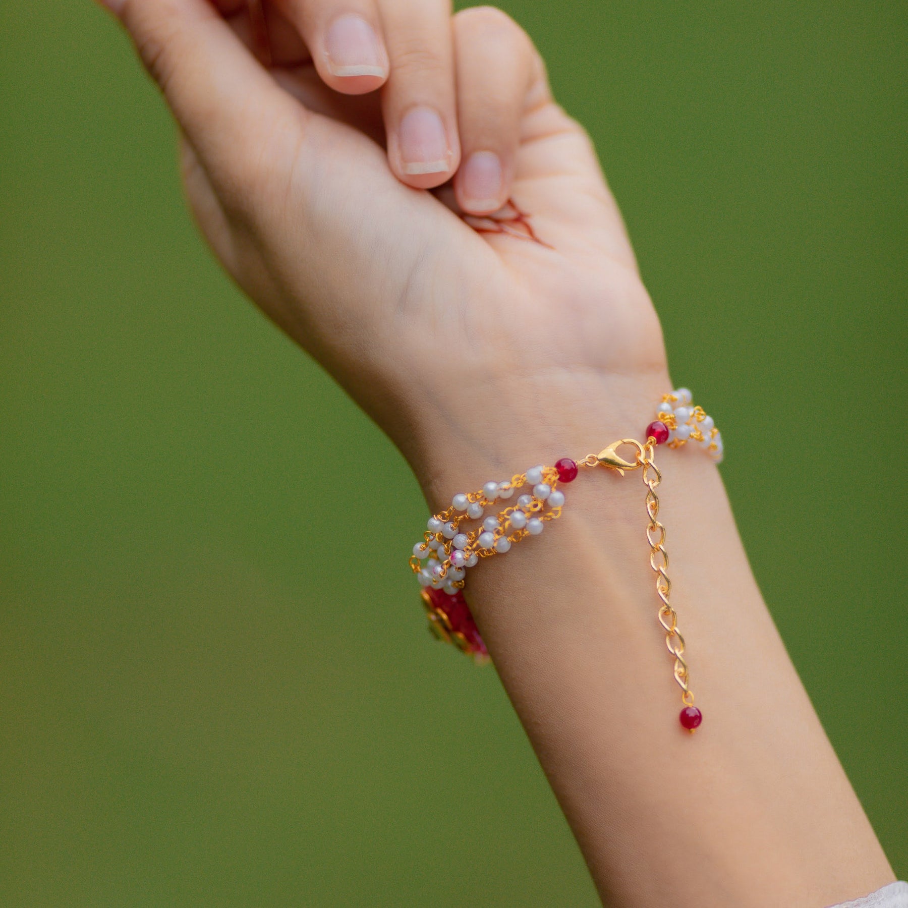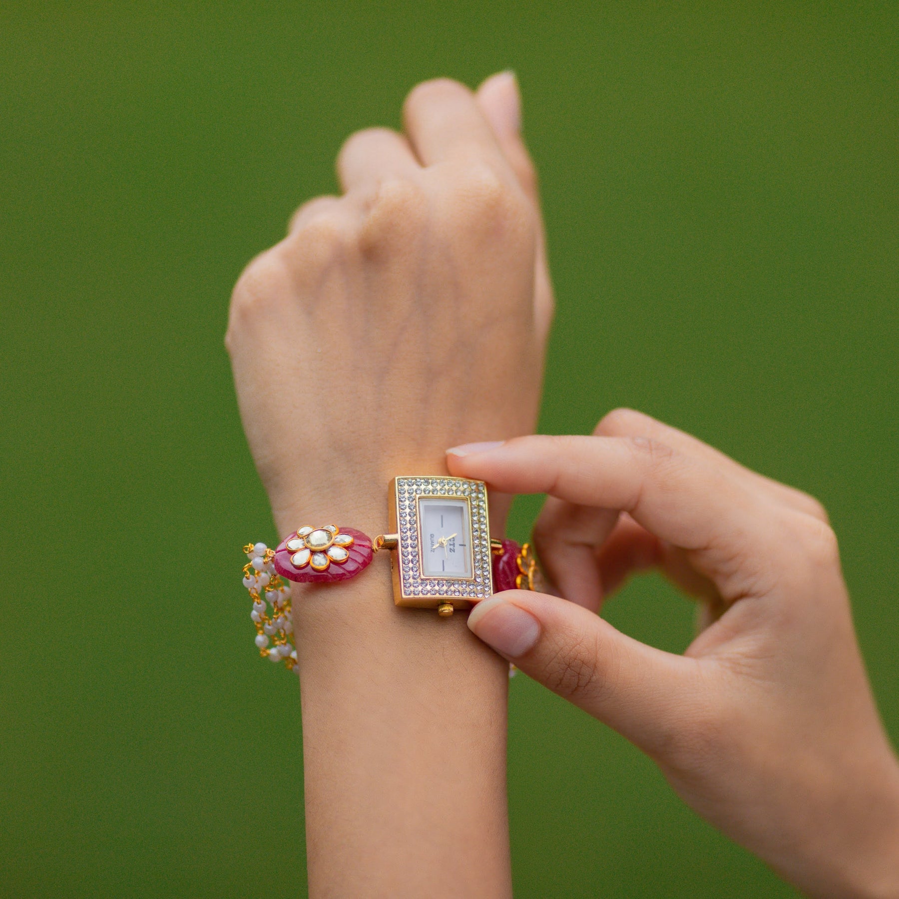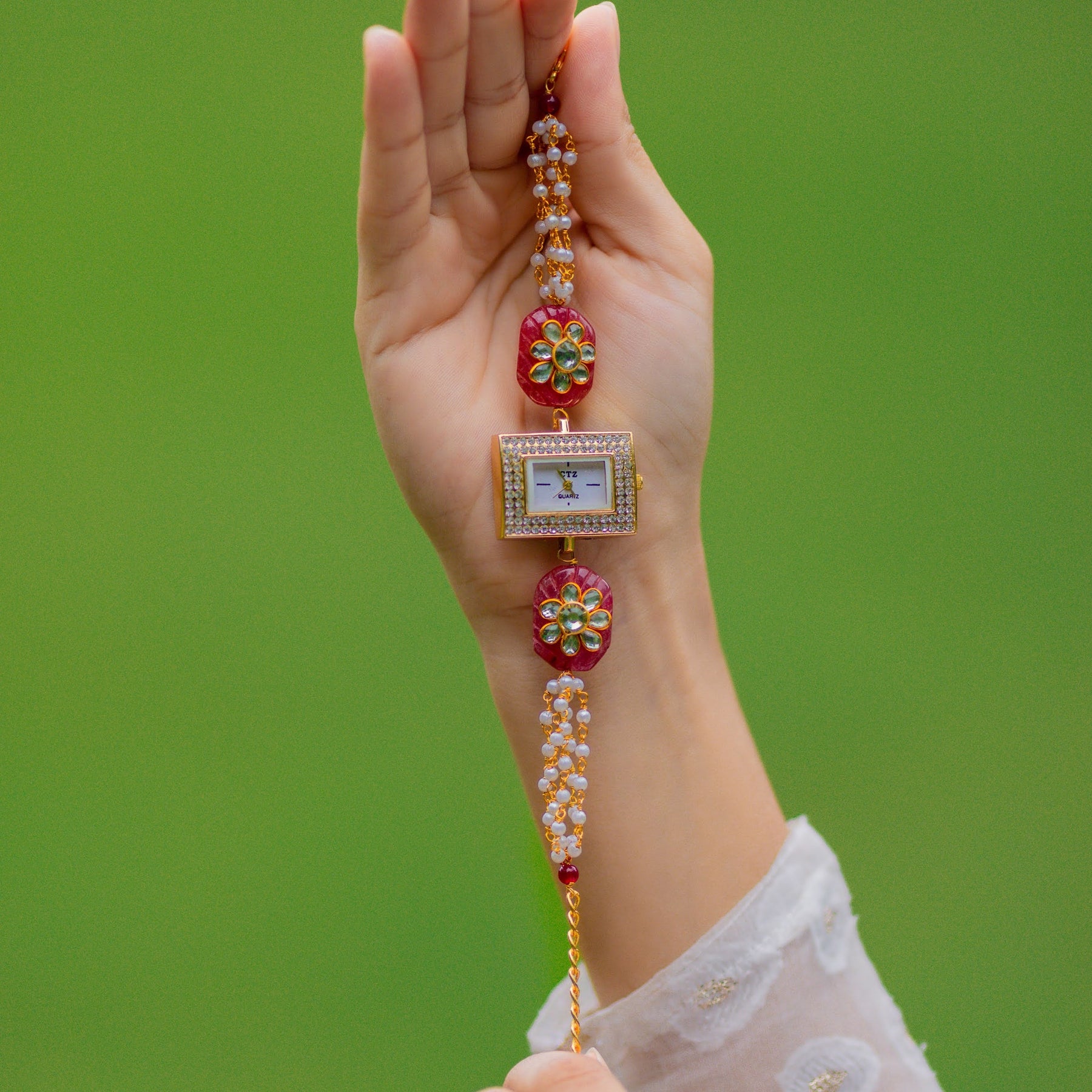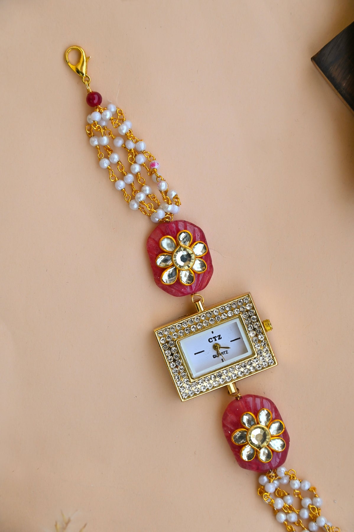 Material: 22k Gold Plated Silver Alloy, Jadau Beads, Quartz Watch