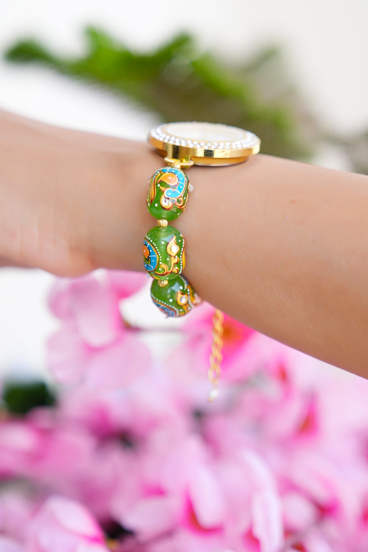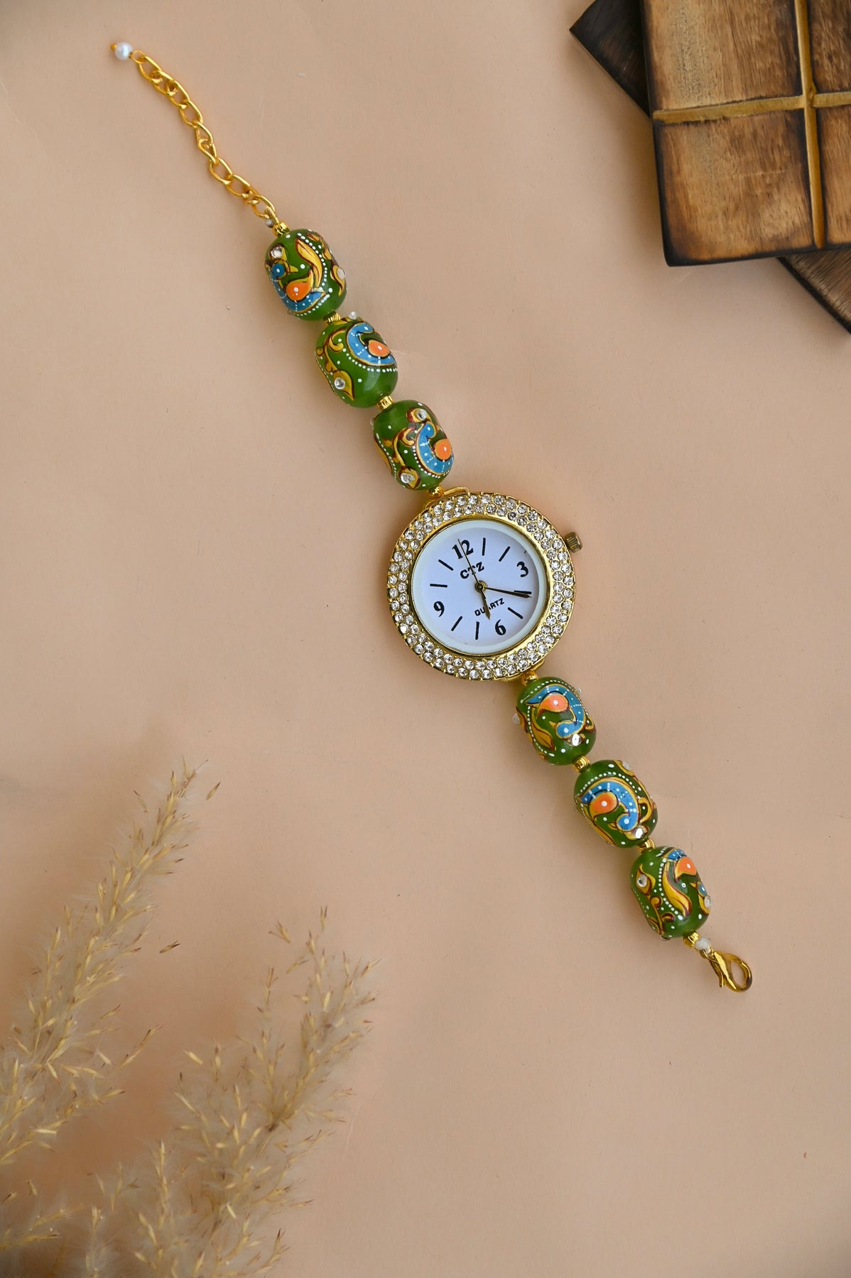 Enhance your style with our designer bead wristwatch. This exquisite timepiece features intricate designs and craftsmanship, perfect for any occasion
