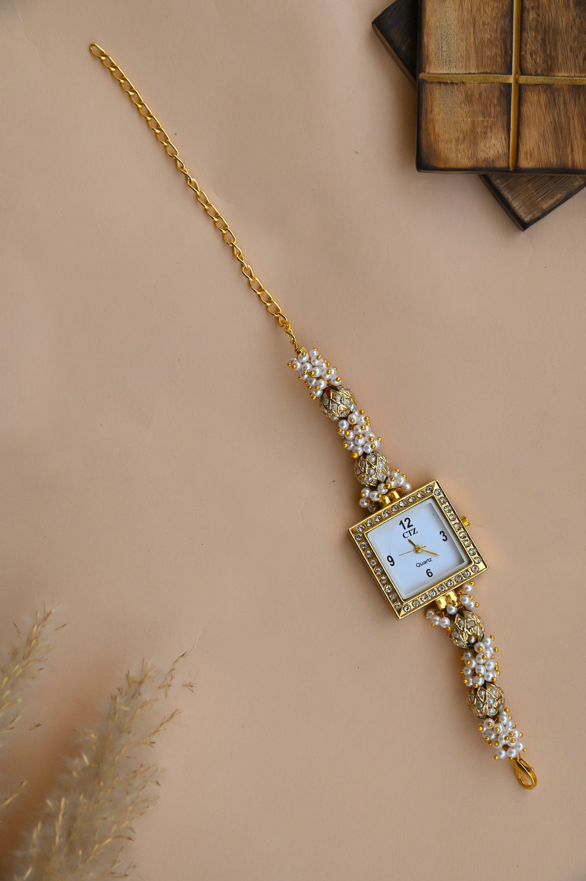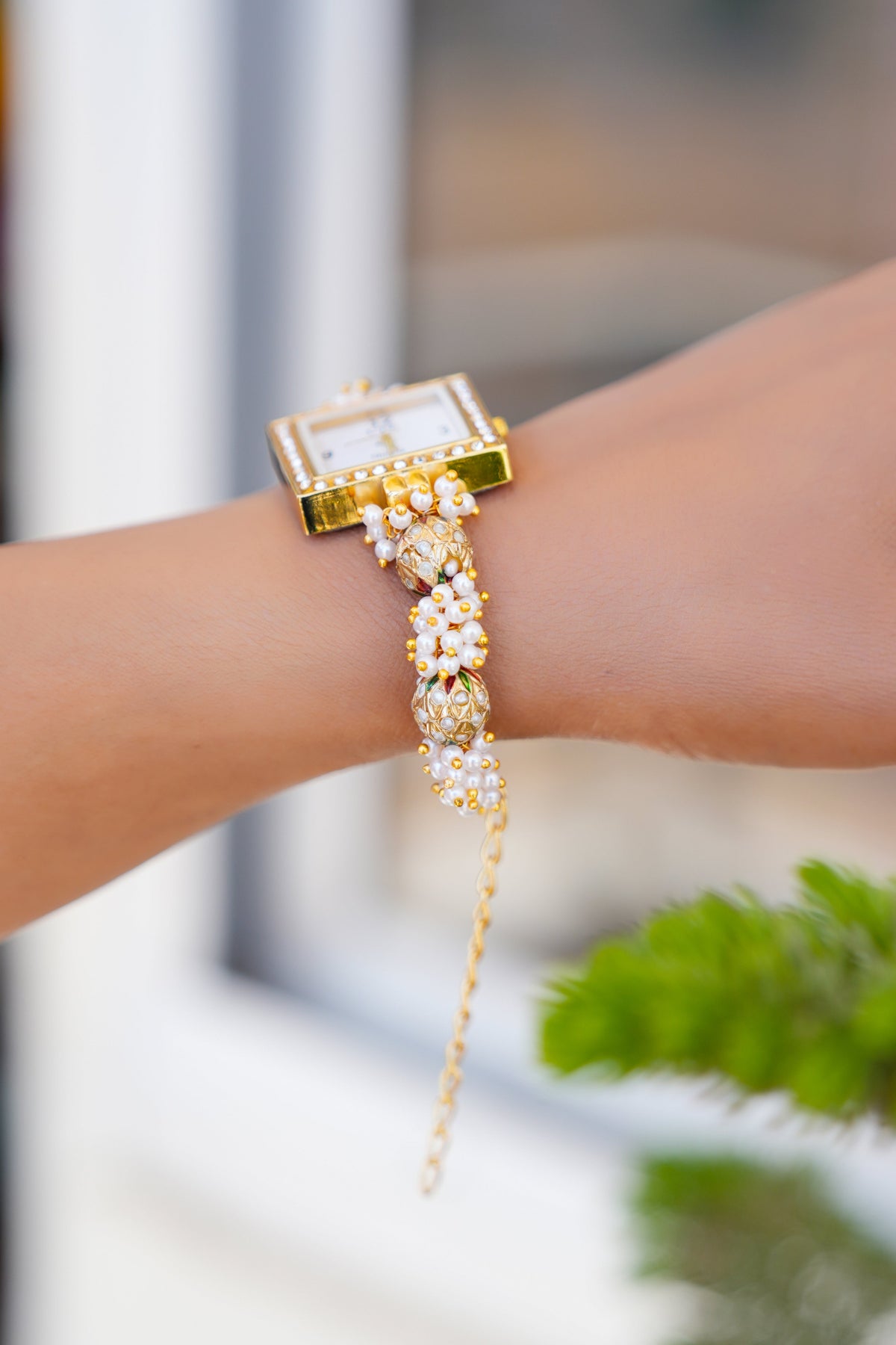 Material: 22k Gold Plated Silver Alloy, Jadau Beads, Quartz Watch