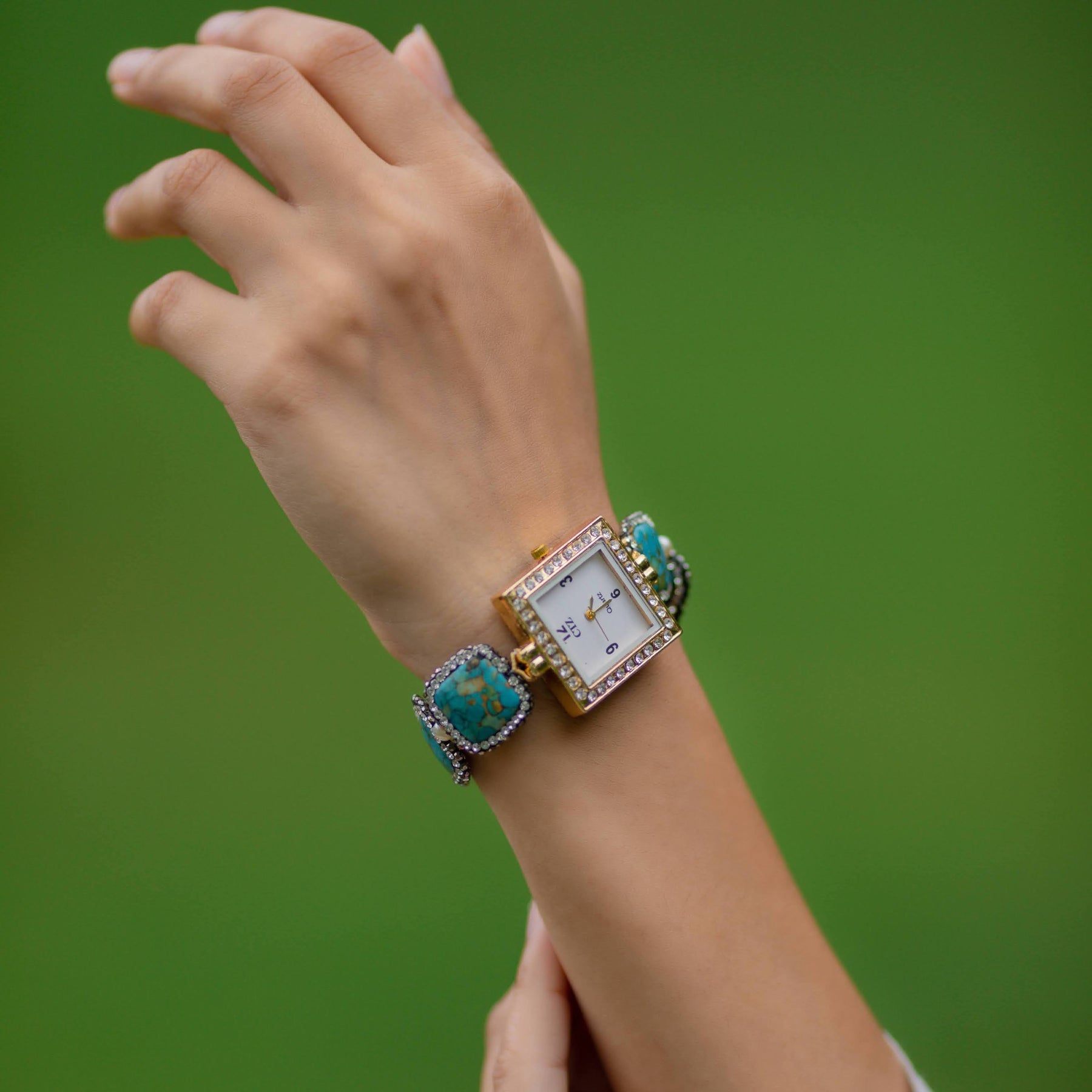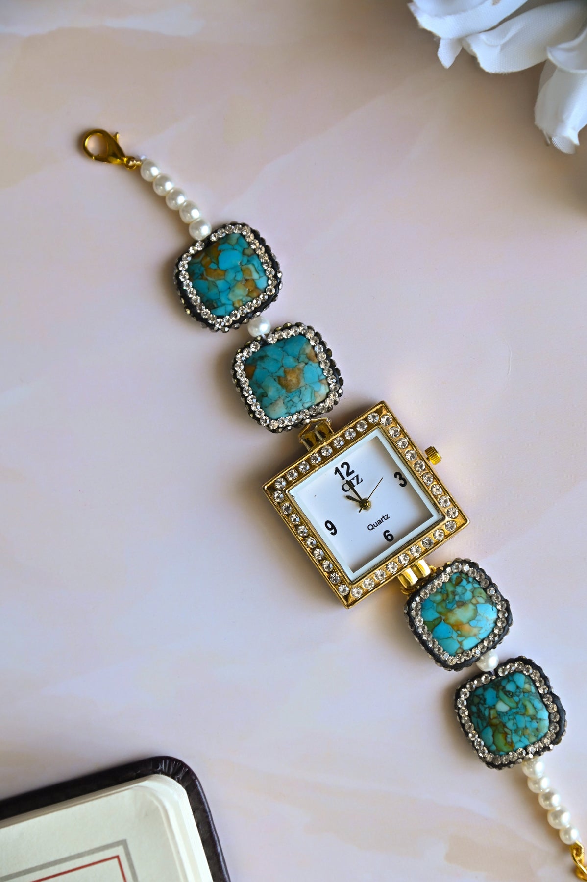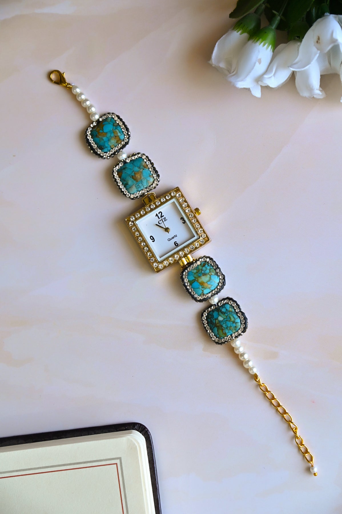 Enhance your style with our turquoise beads wrist watch. This exquisite timepiece features intricate designs and craftsmanship, perfect for any occasion
